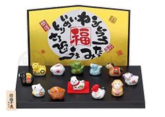 【数量限定】置物 十二支セット/錦彩招福十二支飾り/毎年使える 干支 縁起 町内会 敬老会 神社 寺社 年末 年始 家庭用 業務用