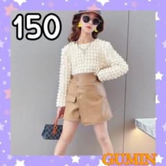 新品 キッズ ふわふわトップス レザーパンツ おしゃれ セットアップ 150