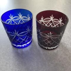 切り子 ペアグラス 菖蒲 ロックグラス 青赤 ハンドメイド コップ