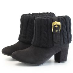 ブーティー ブーティ ローヒール レディース 太ヒール ショートブーツ ニットデザイン 歩きやすい(kk-1221) (ルームナイン) [Room9]