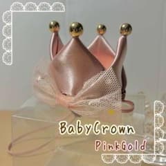 ベビー 王冠 サテン ピンクゴールド 誕生日 記念 フォト ストーン