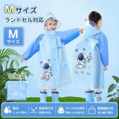 レインコート ブルー Mサイズ 収納袋付き 携帯 反射板 付き ランドセル対応