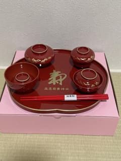 明治神宮 お食い初め用の赤い漆器 & 百日祝撮影プレートのセット