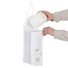 アストロ トイレットペーパーホルダー 半透明 ホワイト 吊り下げ トイレペーパーストッカー トイレ収納 ポケット付き 110-07