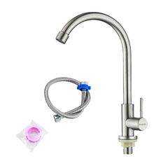 キッチン用水栓 シンク蛇口 立水栓 シングルレバー単水栓 手洗いボウル用水道 蛇口首振り 360度回転節水 スワン型 延長ネジ7cm (A)
