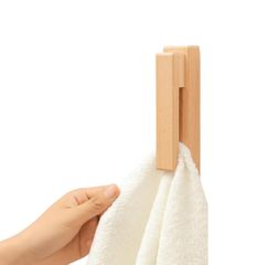 siawadeky タオル掛け 木製 タオルハンガー おしゃれ 縦型 クリップ 壁掛け ホルダー 布巾ラック 粘着テープ付き 北欧風 ふきん掛けフック 穴あけ不要 ナチュラル 洗面所 キッチン トイレ 浴室用