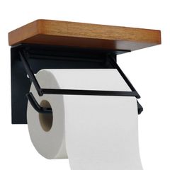 トイレットペーパーホルダー 壁掛け式木製トイレットペーパーホルダー 棚付き 紙巻器 小物置き 取り付け簡単 汚れに強い天板 おしゃれ トイレや浴室に最適