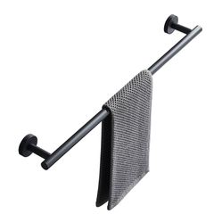 KWQKEMタオルバー ステンレス丸座 タオル掛け おしゃれ たおるハンガー アイアンバ ー 壁掛け ネジ付き タオルホルダートイレ 浴室 バスルームアクセサリー キッチン用 省スペース (ブラック タオルバー60cm)