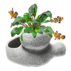 heizi 水槽 水草 鉢 ソイル 砂 付き 水槽ポット アクアリウム 石 オブジェ メダカ 熱帯魚 (3ホール 大)