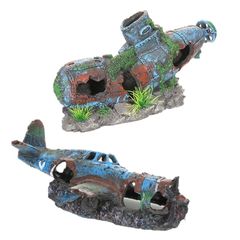 ST TS アクアリウム 水槽 オブジェ 戦闘機 潜水艦 戦艦 隠れ家 アクアリウムオーナメント インテリア 置物 飾り (戦闘機&戦艦)
