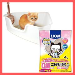 ★注目商品★ライオン 子猫お迎え応援セット 猫トイレ ニオイをとる砂 コンパクトコーナー型猫トイレ+0歳(子猫)からのニオイをとる砂4.0L×1袋セット LION PET 1