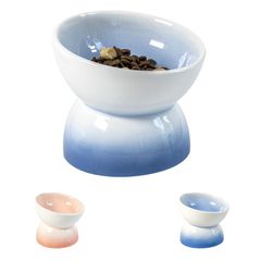 MONIWOLLY 猫 フードボウル 陶器 猫 餌入れ 傾斜 15度 猫 皿 斜め 重たい猫皿 吐き戻し防止 脚付 餌皿 陶磁器製 犬猫用 食器 ごはん皿 水入れ 電子レンジ 食洗機対応 直径14.5cm (グラデーションブルー)