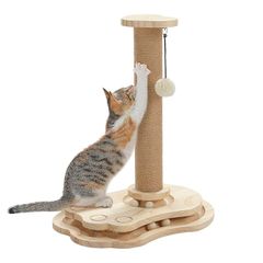 PAWZ Road 猫 爪研ぎ 回転ボール 猫のおもちゃ 木製 麻紐爪研ぎポール 縦置き型 自立式 倒れない 子猫 ひとり遊び コンパクト 省スペース ストレス解消 運動不足対策 ポンポンおもちゃ 安定 頑丈 ガリガリ 組み立て簡単 可愛い 人気 - 高さ50
