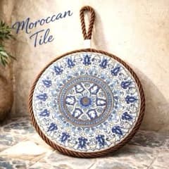 鍋敷き 陶器 セラミック コルク 壁掛け モロッカンタイル 白 青 壁掛け A