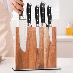 【新品】包丁スタンド 包丁立て シンク上 天然木材 ステンレス キッチン収納 強力マグネット 7本まで収納可能 (包丁スタンド2)