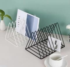 金属製 三角形 収納 ラック ブックスタンド 白 ホワイト