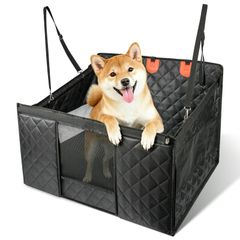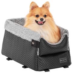 【迅速に発送】petsfit 犬ドライブボックス 小型犬用 犬シート車 アームレストボックス ドライブシート 飛び出し防止 車載ベッド 洗えるマット付き 折りたたみ 安定 旅行用?通院?帰省 レザー製 ブラック 7f0e58c4