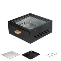 【迅速に発送】バーベキューコンロ 木炭無煙囲炉 コンパクト卓上シチリン バーベキュー BBQ コンロ 鉄板焼き 炭火焼き 炭足しカンタン 収納袋付き キャンプ用品 1台3役 (焼き皿があり) 1b20cf9a