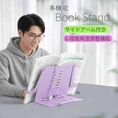 アーム付きブックスタンド パープル 角度調整 折りたたみ 書見台 金属製 多用途