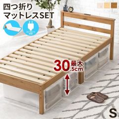 四つ折りマットレス付 天然木すのこ シングルベッド ホワイトウォッシュ 高さ 3段階調節可 約39/34/29cm 組立式
