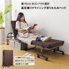 折りたたみベッド 約幅65.5cm スチールフレーム コンパクト 高反発リクライニング 組立品 ベッドルーム 寝室 来客