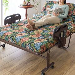 寝心地が選べる手動ベッド 花柄 硬質セミシングル 組立品