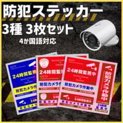 防犯ステッカー セキュリティシール 防犯対策 防水 3枚 4ヵ国語 カメラ型26