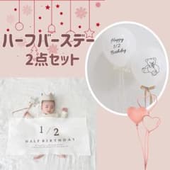 2点セット ハーフバースデー タペストリー 風船 記念写真 セルフ撮影 6か月