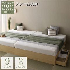 ベッド ワイドキング 280(D+D) ベッドフレームのみ ナチュラル 2台セット 収納付き 引き出し付き ヘッドレス 省スペース