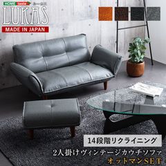 カウチソファ ヴィンテージ リクライニング オットマン付き LUKAS