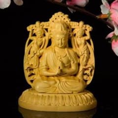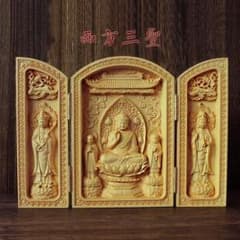 柘植木彫仏像 浄土宗西方三聖 開閉式筒型1