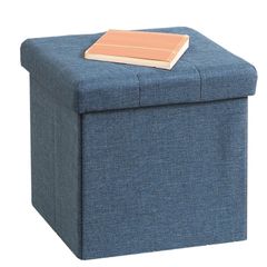 不二貿易 収納スツール 収納ボックス 幅31×奥行31×高さ30.5cm ネイビー オットマン 耐荷重80kg 折りたたみ ボックススツール ハント 85993
