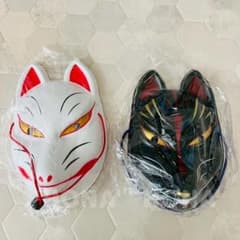▽キツネお面 白黒2個セット 仮装 お祭り 神社 観光 結婚式 ハロウィン 和風