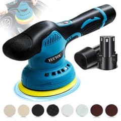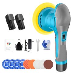 ポリッシャー 充電式 ダブルアクション 大容量バッテリ一2個搭載 車 コードレス 充電式ポリッシャー ブルー 国内発送