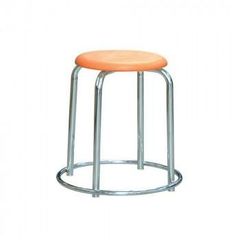 ルネセイコウ ラウンドスツール(外リング付き) 日本製 完成品 RP-4C オレンジ・クロームメッキ