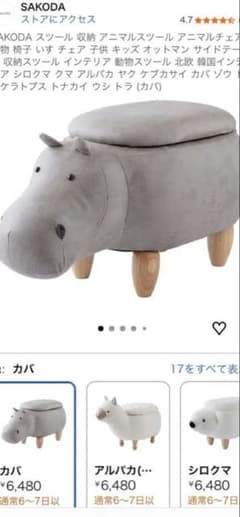 【値下げ】アニマルスツール★カバ 耐荷重約60kg
