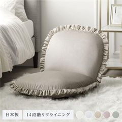 座椅子 ベージュ リクライニング 日本製 コンパクト フリル付き ニュアンスカラー フロアソファー フロアチェア