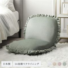 座椅子 スモーキーグリーン リクライニング 日本製 コンパクト フリル付き ニュアンスカラー フロアソファー フロアチェア