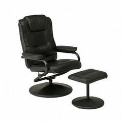 リクライニングチェア パーソナルチェア 約幅78cm ブラック オットマン付き 無段階式 スチール 合皮 リビング 在宅ワーク