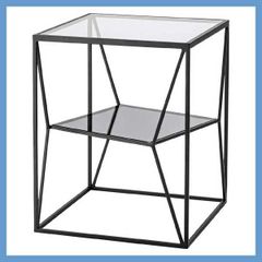 モダンアートな角型サイドテーブル(ガラス天板)「W35×D35×H50cm」(スチールフレーム)No.703/ブラック