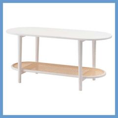 ラタン調の収納棚付き楕円型センターテーブル(収納ラックボード)「W100×D43×H46cm」No.472/ホワイト