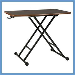 木目調天板(鏡面仕上げ)の折りたたみ式昇降テーブル(マルチテーブル・デスク)「W90×D55×H11.5-70cm」(高さ調節可能)No.530/ブラウン