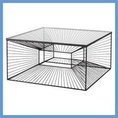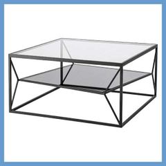 モダンアートな角型センターテーブル(ガラス天板)「W70×D70×H35cm」(スチールフレーム)No.704/ブラック