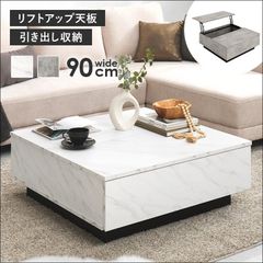 天板リフトアップテーブル VKT-7265 幅90cm ロータイプ センターテーブル リビングテーブル リフトアップ天板 引き出し収納付き マーブルグレー マーブルホワイト 送料無料 【全2色】[8276]