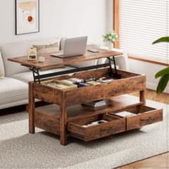 ローテーブル 昇降式 木製 コーヒーテーブル 引き出し付き 収納付き センター