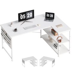 l字デスク 机 pcデスク ゲーミングデスク 右棚左棚 幅107cm 学習机 ゲーミングテーブル パソコンデスク 勉強机 収納袋付き作業机 白い