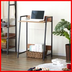 ドウシシャ シンプルデスク 省スペース スリム 幅60 奥行40 パソコンデスク 作業台 ゴミ箱上収納としても L字型天板 軽量 隙間収納 仕事 学習机 リビング キッチン PC ミシン 一人暮らし ブラウン 幅60×奥行42×高さ75cm SD6075-BR