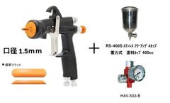 デビルビス ルナ3 LUNA3 M44-1.5G 1.5mm スプレーガン 重力式 ステンレスカップ(RS-400S)、エアバルブ(HAV-503-B)付き