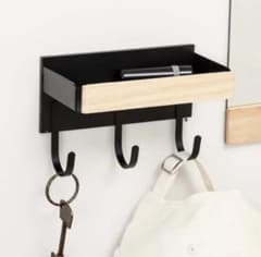 3COINS スリーコインズ マグネットフックトレー 黒 木目調 3フック