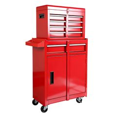BIG RED ツールキャビネット ツールチェスト 大型 ローラー ツールワゴン 鍵付き 引き出し 工具箱 キャビネット ボックス 5段タイプ 大容量 収納多数 工具箱 大型 ガレージ(レッド/キャスター付き)pms